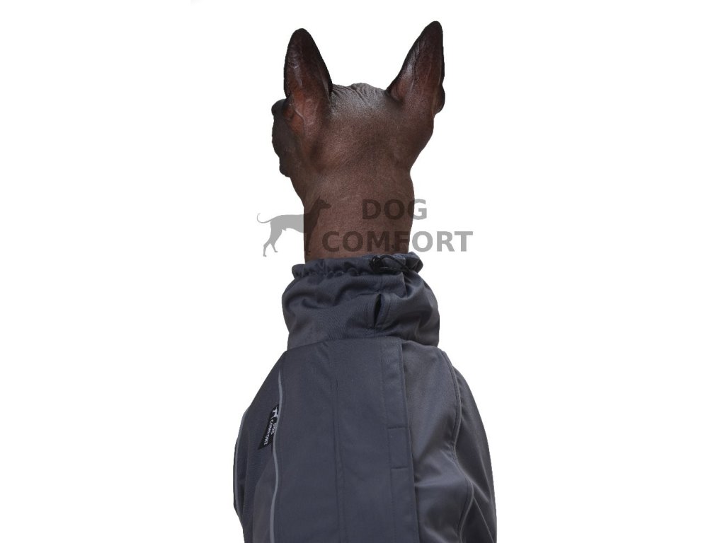 Jacket OUTDOOR PLUS is made from light, stretch membrened softshell with TPU membrane which is waterproof and windproof, softshell fabric is lined by another layer of Micromoss antipilling fleece. Fastener at dog´s back is covered by softshell coverage to prevent humidity to get into clothes,  on the back is zip underlaid, it protects dogs body from scratch. Collar is provided by hole for a leash attach. The end of collar can be tighten.