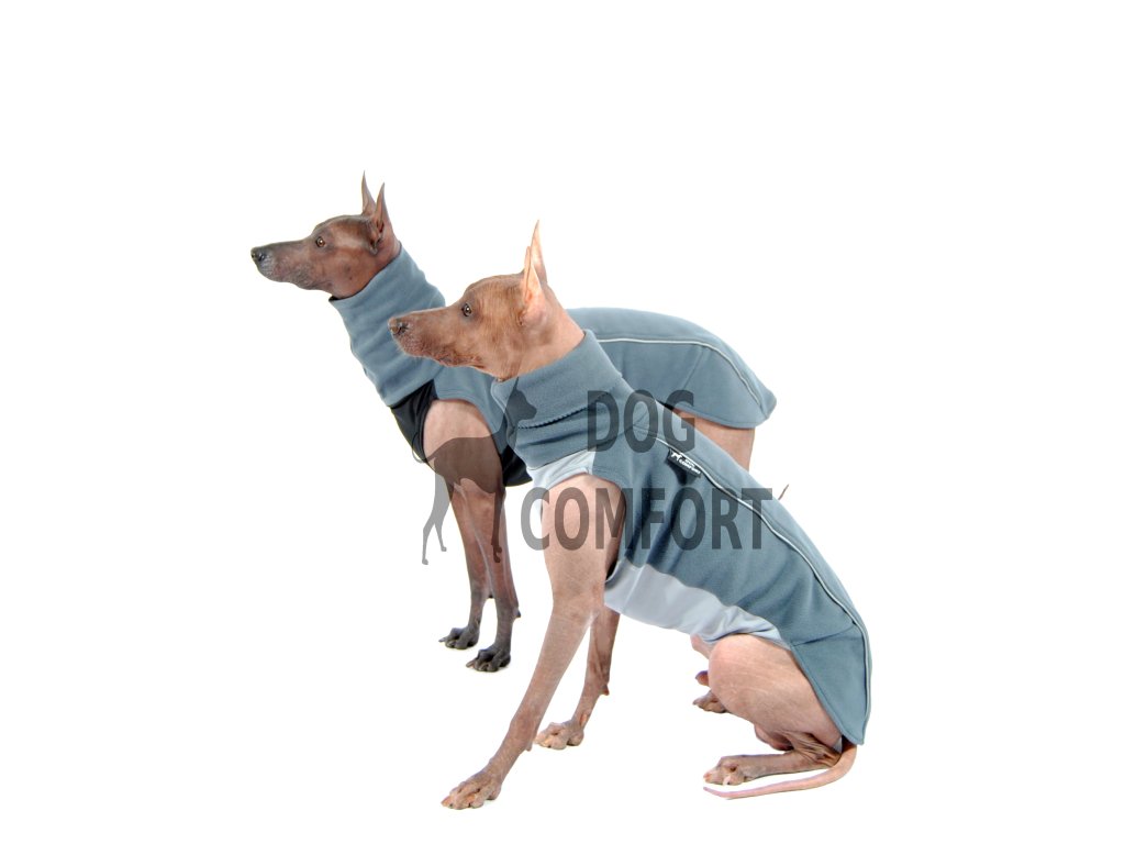 Upper layer of waistcoat is made of Micromoss antipilling fleece, down layer in made from Lacomfort. Upper layer is double (layer of fleece) around back it ensures warming up of dogs back. Fleece collar is long enough to protect all dogs neck.