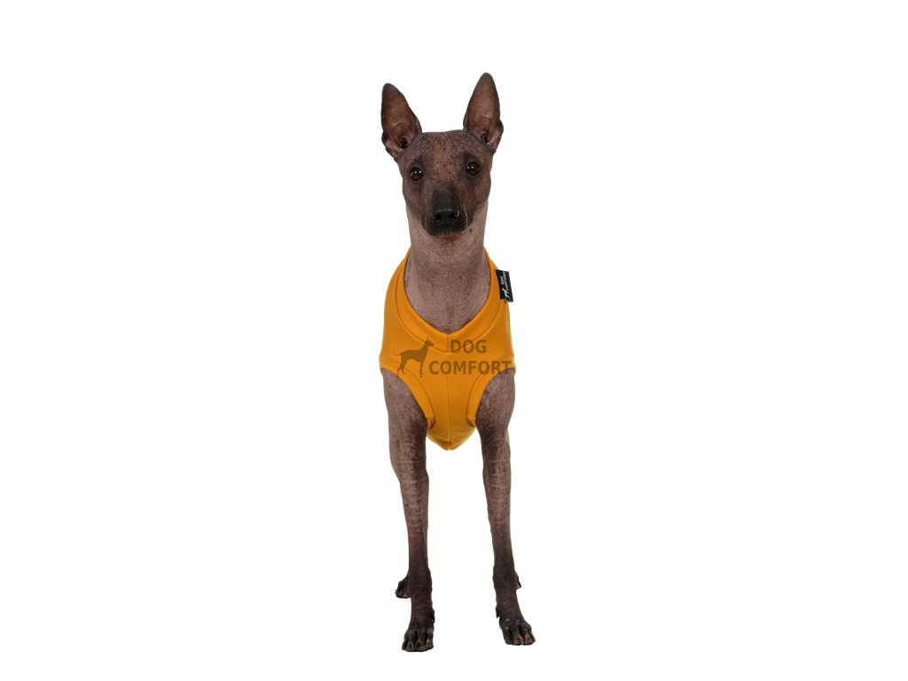 Tílko je tvarováno tak, aby co nejvíce chránilo hrudník a záda psa. U fen je střih protažen co nejvíce k zadním nohám.