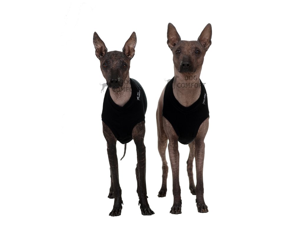 Tílko je tvarováno tak, aby co nejvíce chránilo hrudník a záda psa. U fen je střih protažen co nejvíce k zadním nohám.