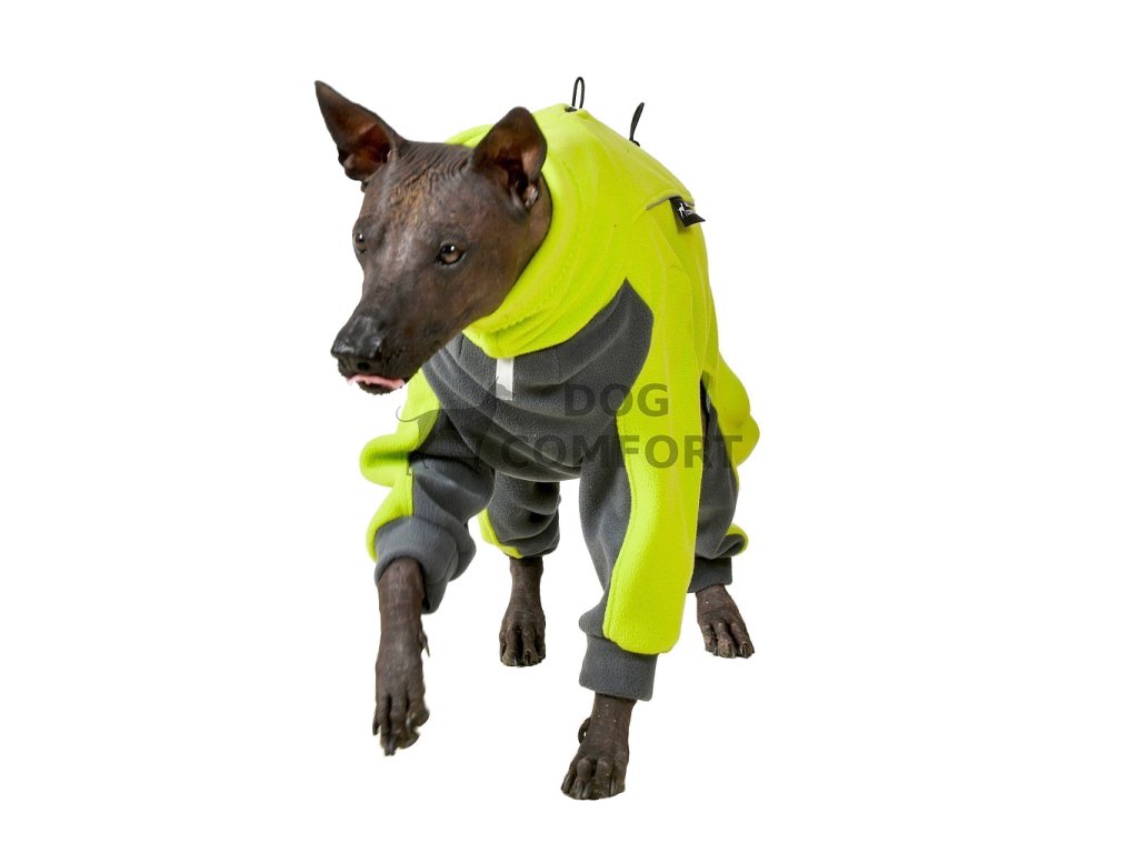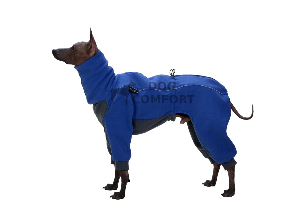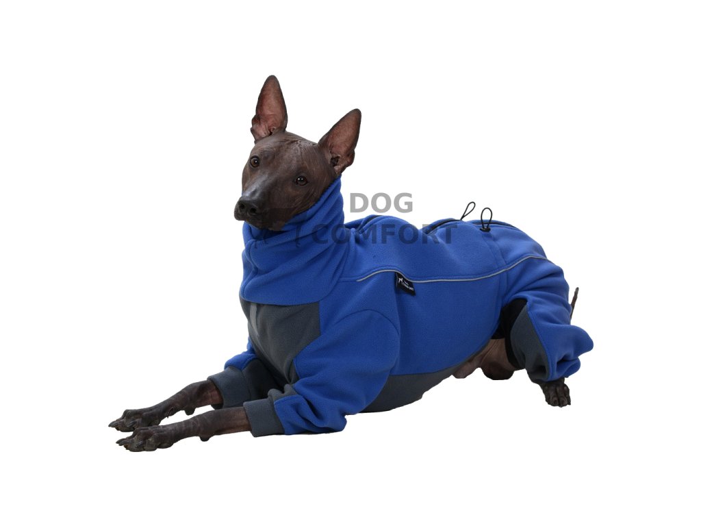 Overal je vyroben z jedné vrstvy Micromoss antipilling fleecu, dlouhý límec přiléhá ke krku a tím zabraňuje uniku tepla. Overal je tvarován tak, aby chránil celé tělo, přední i zadní nohy psa, velmi snadno se obléká. Díky použitému materiálu je overal velmi měkký a příjemný na nošení, s vysokými užitnými vlastnostmi.