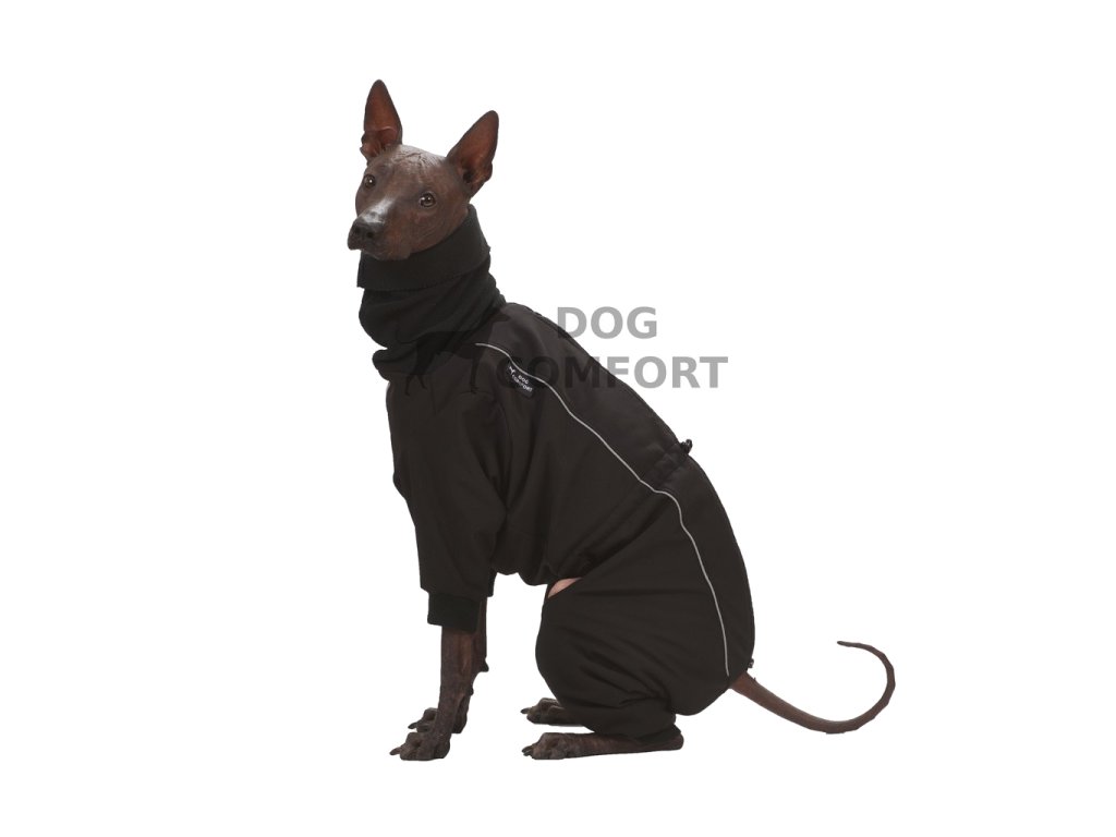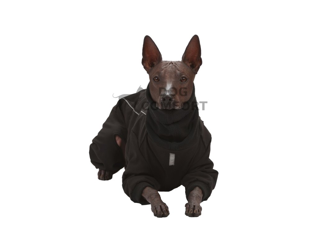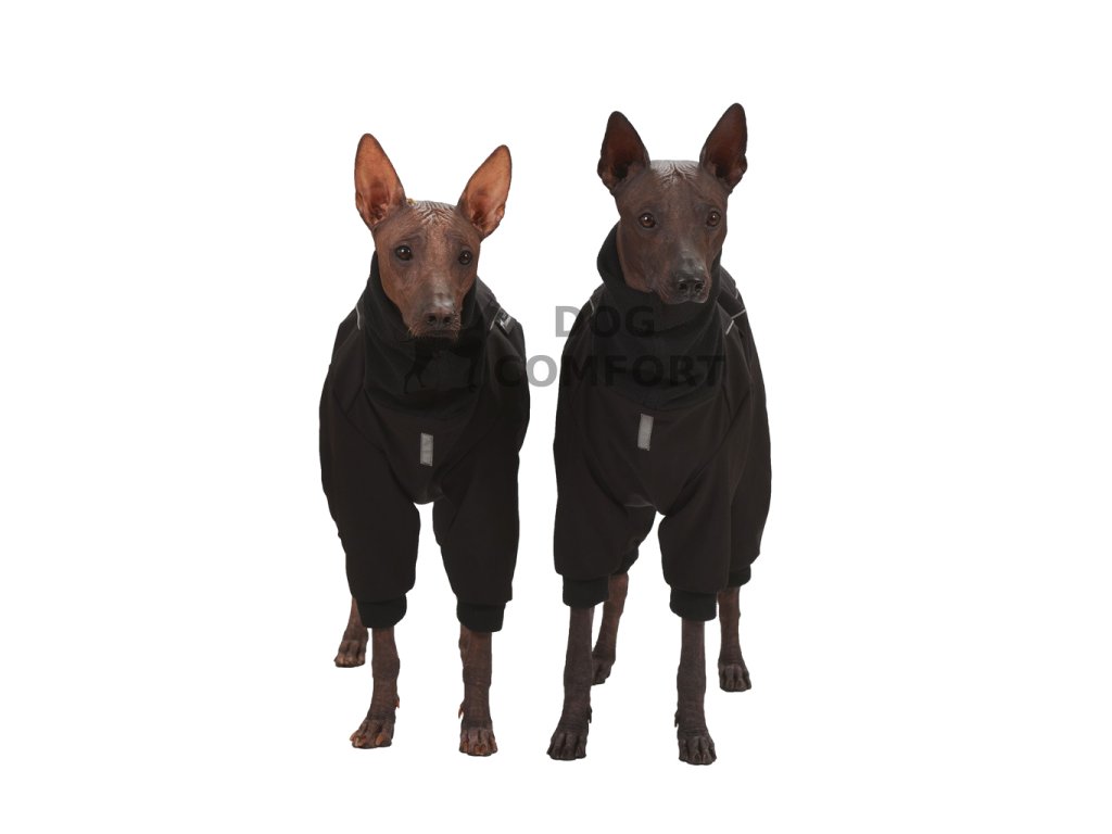 Kombinéza je vyrobena z jedné vrstvy zimního softshellu s membránou, který je z rubu počesaný fleecem, a navíc podšitá další vrstvou Micromoss antipilling fleece. Dlouhý fleecový límec kombinézy přiléhá ke krku a tím zabraňuje úniku tepla. Kombinéza je tvarována tak, aby chránila celé tělo, přední i zadní nohy psa, velmi snadno se obléká i svléká.